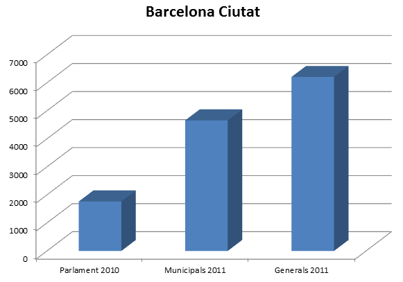 D’aquestes municipals cal destacar que el vot que es pot considerar de protesta (nul + blancs + escons en blanc) va arribar fins pràcticament el 8%, sens dubte influenciat pel #15m i les acampades. A aquestes generals, a Catalunya, aquest vot ha fregat el 5%. Tenint en compte que aquest vot habitualment estava al voltant del 1%, reflexa clarament que el nivell de descrèdit de la partitocràcia va en augment …
